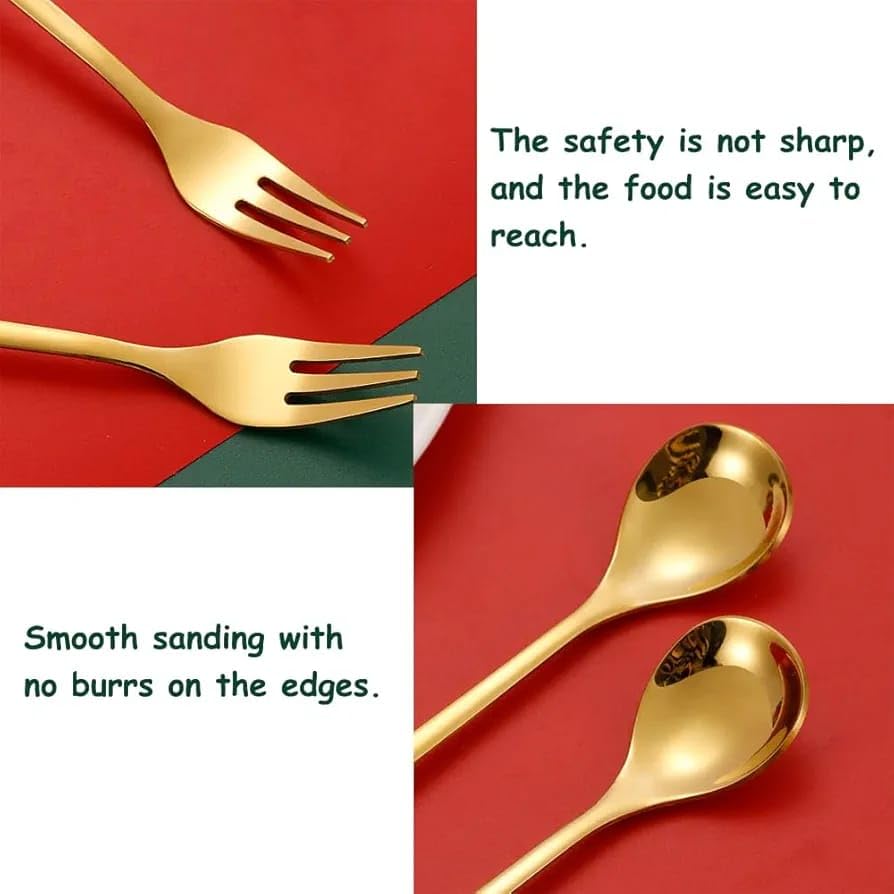 - Premium Finish : Crafted from high-quality stainless steel with a mirror-polished golden finish, this cutlery set is both durable and visually appealing.